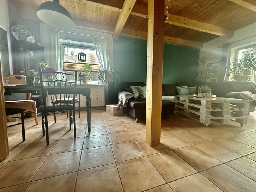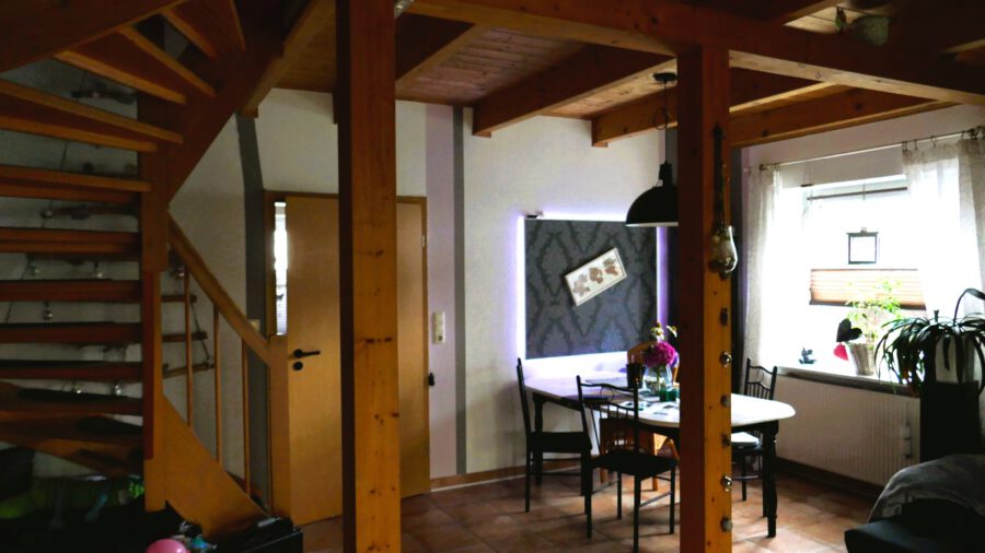 Der Wohnbereich erstreckt sich über zwei Etagen und auch der Spitzboden wird genutzt.
