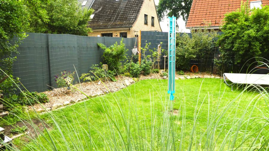 Dahinter liegt der Hofbereich, der mit einer schönen Rasenfläche und Randbepflanzungen gemütlich gestaltet ist.