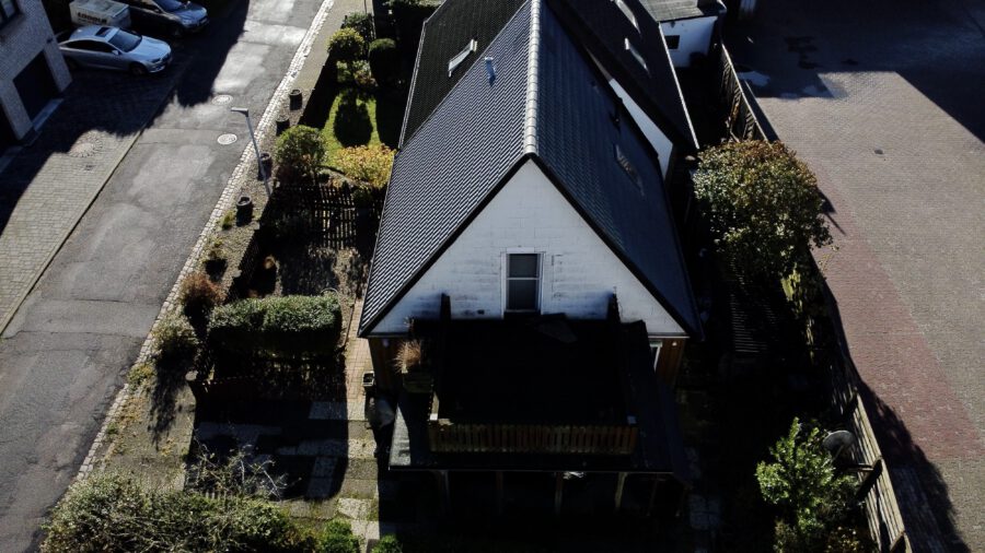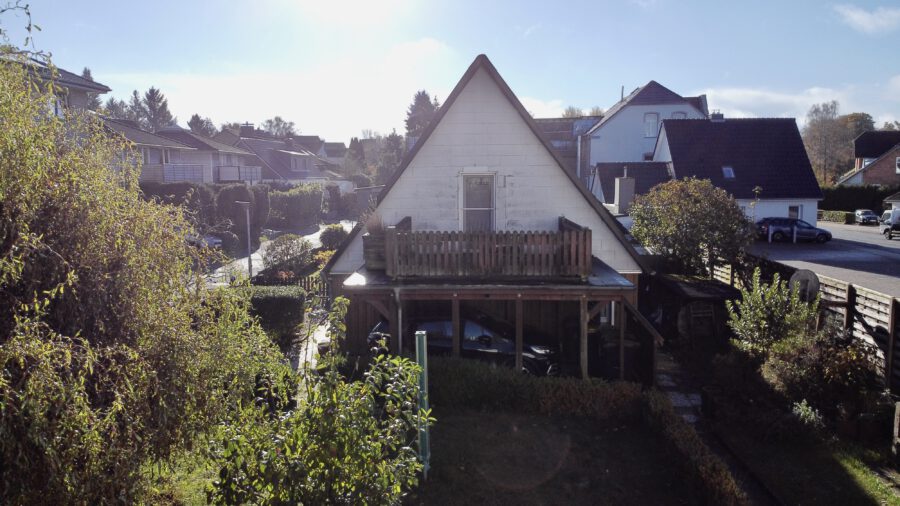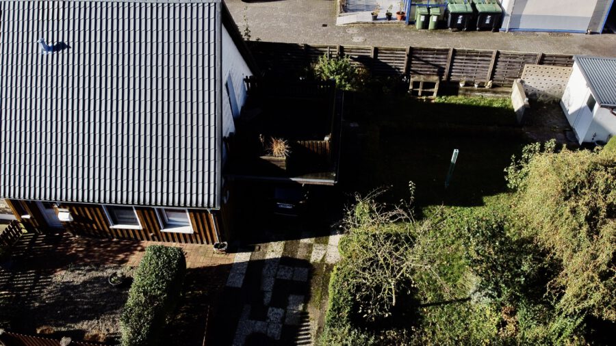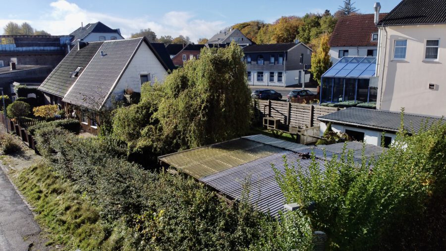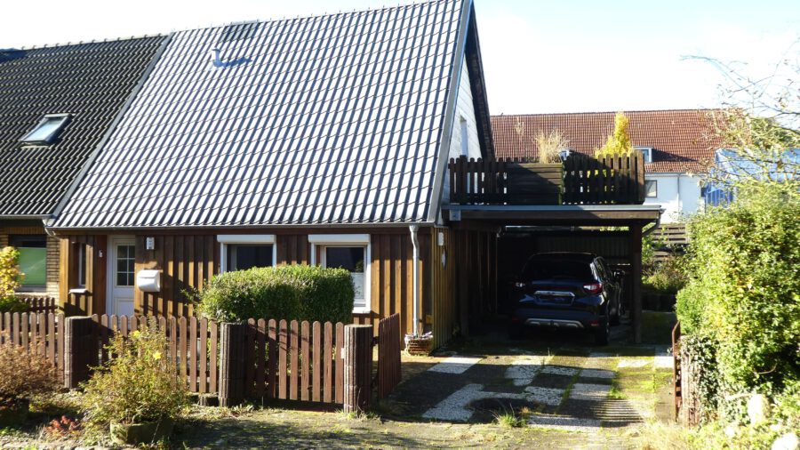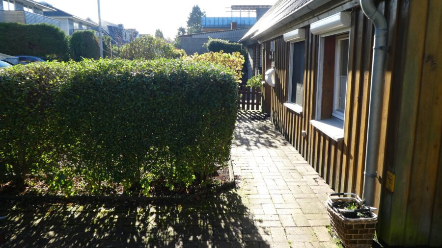 Die kleine Doppelhaushälfte liegt auf einem großen Grundstück am Ende einer Sackgasse.