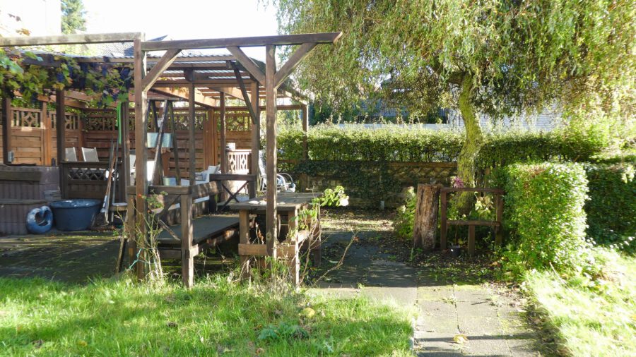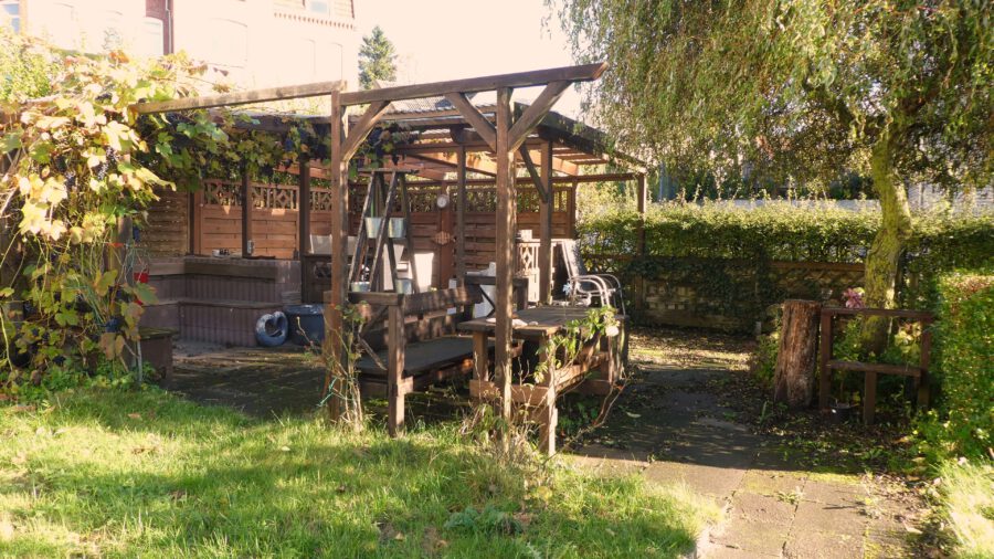 Umrahmt von Weinreben kann man hier, in aller Ruhe, den Tag ausklingen lassen und die Natur genießen. Was wir am Ende noch erwähnen möchten, ist, dass sich im Haus eine feuchte Wand befindet. Diese sollte unbedingt ausgekieselt werden. Wir schätzen den Sanierungsbedarf an dieser Stelle auf 5.000 Euro. Dies wurde in die Kaufpreisfindung mit einbezogen.