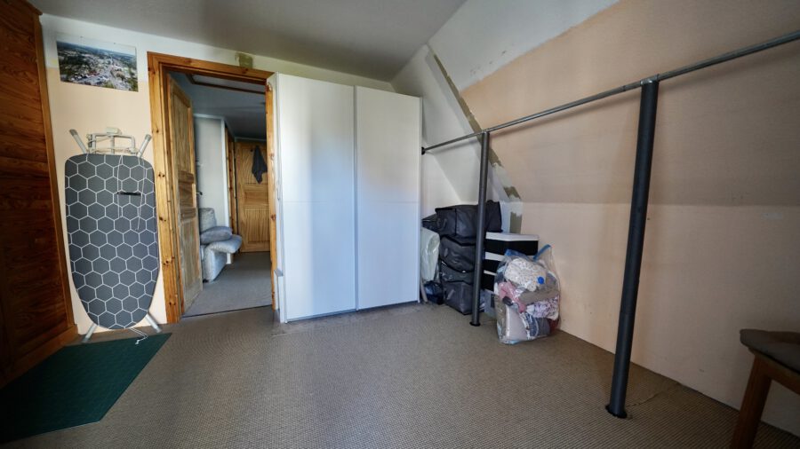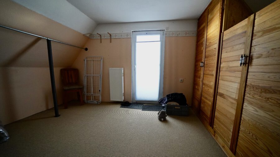 Dort oben ist ein Gäste-WC, ohne Fenster, ein großer Flurbereich und ein schönes, geräumiges Zimmer, von dem man die Dachterrasse, in nördlicher Ausrichtung, betreten kann.